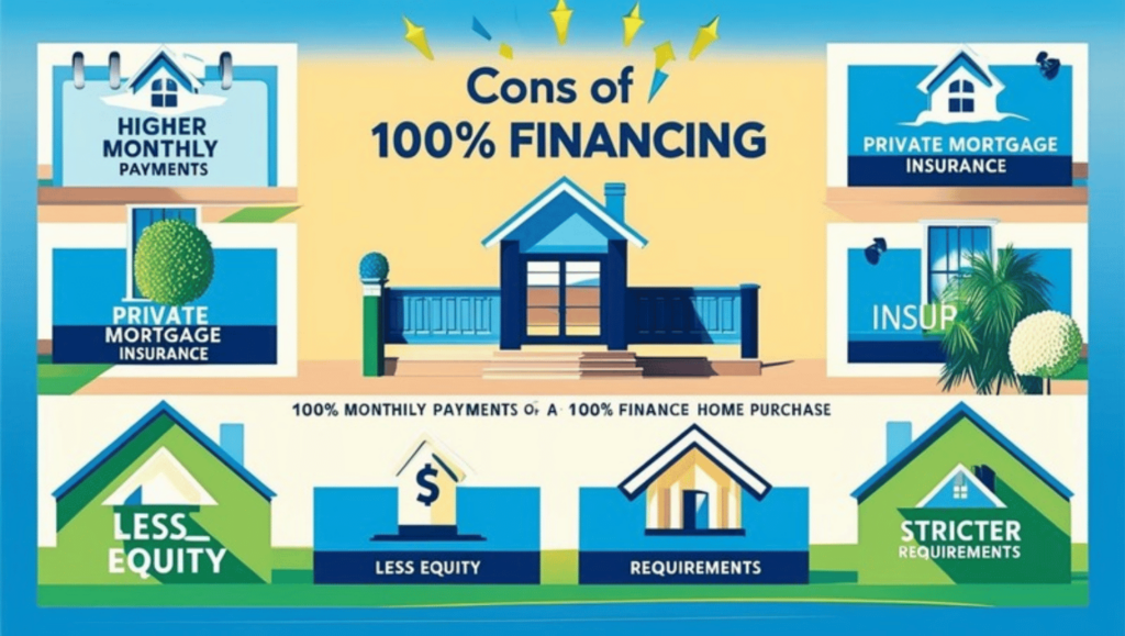 - Higher Monthly Payments: Financing 100% of the home’s cost means larger monthly mortgage payments.